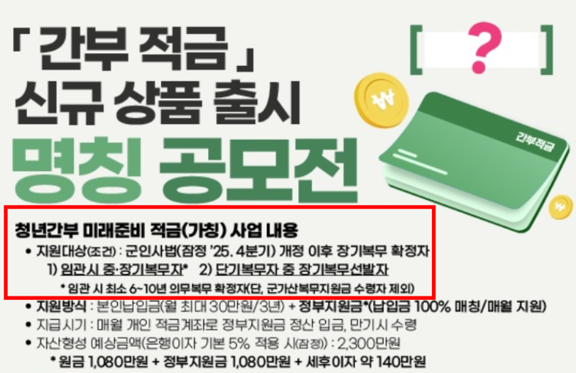 특히 군인은 외부 부업이 금지되고 직업적 특성상 잦은 이사·근무지 이동 등 경제적 제약이 많은 편이기 때문에 안정적으로 자산을 축적할 수 있는 제도 마련이 필요했습니다. 이러한 배경이 군간부적금 도입의 핵심입니다.