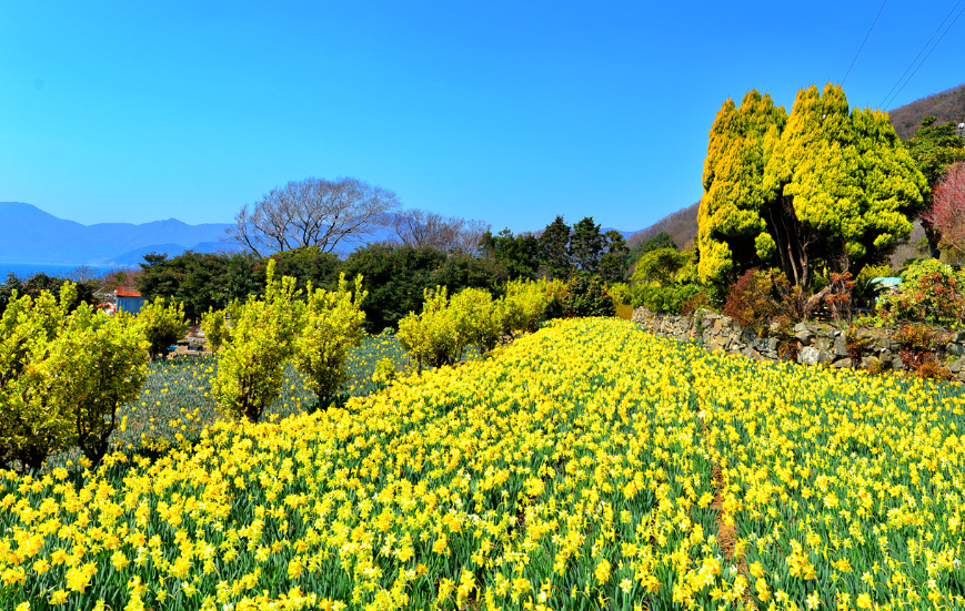 특징: 마을 주민들이 직접 가꾼 약 5만 송이의 수선화가 논둑과 마을 길을 따라 흐드러지게 피어남. 조용한 시골 마을 풍경과 봄꽃이 어우러진 정감 가득한 명소