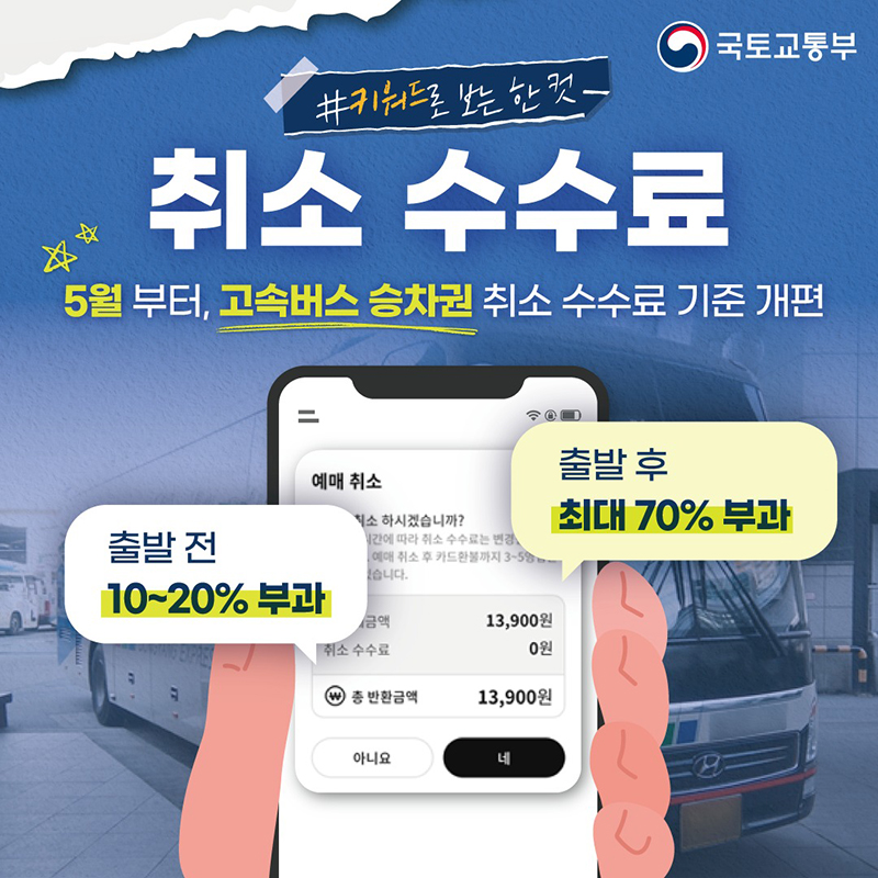 국토교통부는 이러한 문제점을 해소하기 위해 2025년 5월 1일부터 고속버스 취소 수수료 기준을 대대적으로 개편했습니다. 이번 개편안은 다음과 같은 구조로 바뀌었습니다.