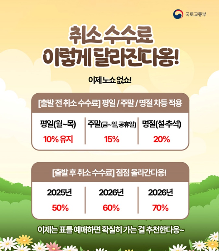 출발 전 취소 수수료 최대 10% → 수수료 최대 20%