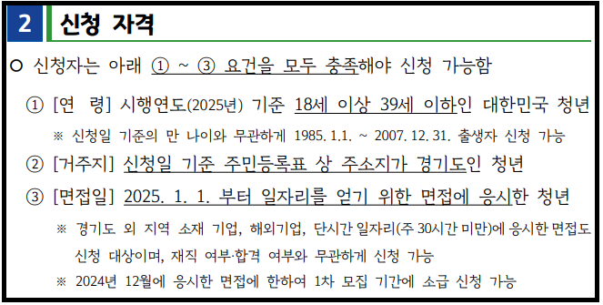 ‘경기도 청년 면접 수당’은 생각보다 까다롭지 않은 조건으로 신청이 가능하지만, 기본적인 요건을 반드시 충족해야 합니다. 아래 항목에 해당하는 경우 신청이 가능합니다.
