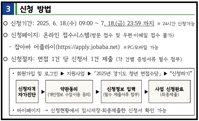 신청 절차는 온라인 중심으로 간편하게 진행됩니다. 다만 정확한 제출서류와 면접 증빙이 있어야 지급이 가능하므로 사전에 준비가 필요합니다.
