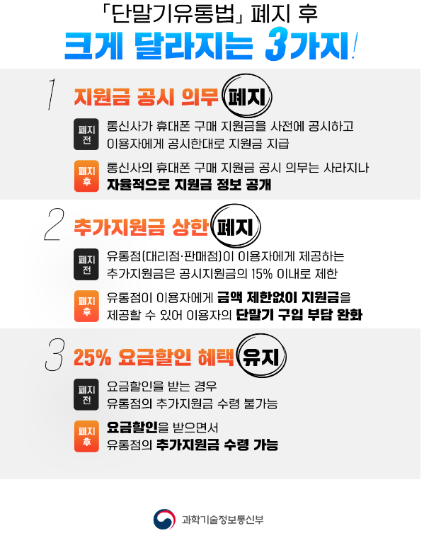 정부는 이처럼 지원금 관련 사항을 명확히 고지하고 차별 없는 영업을 유도함으로써, 폐지 이후 예상되는 시장의 불확실성과 부작용을 최소화하고 소비자 보호를 강화하겠다는 입장입니다.