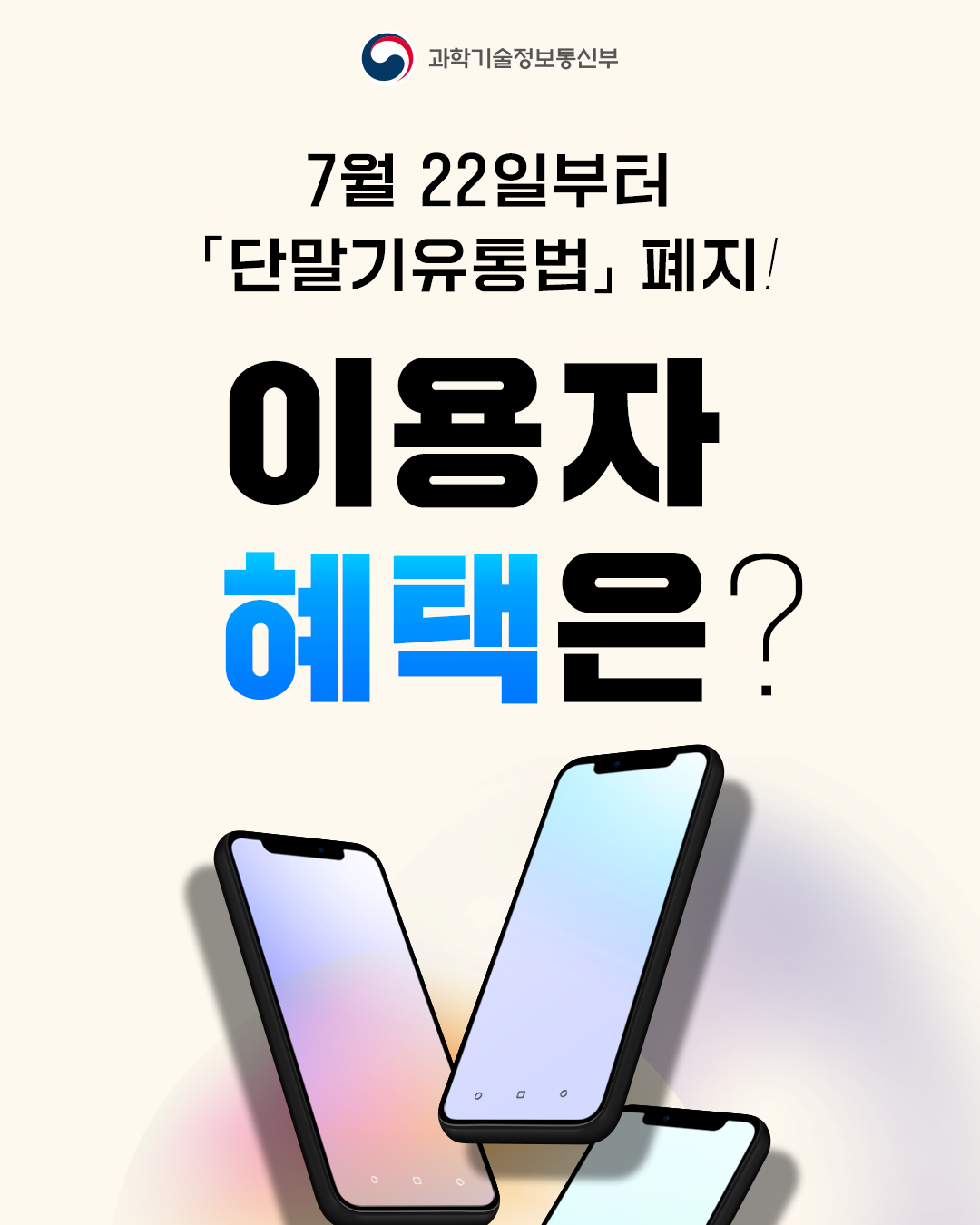 7월 22일부터 ‘단통법’으로 불리던 「이동통신단말장치 유통구조 개선에 관한 법률」이 폐지되고, 새롭게 개정된 「전기통신사업법」이 시행됩니다. 2014년부터 10년 넘게 유지돼 온 단통법은 통신비 투명성 강화라는 목적을 가졌지만, 지원금 제한과 유통구조 고착화 등의 부작용도 함께 낳았습니다. 이번 법 개정은 이동통신사 간 경쟁을 유도하고 소비자에게 보다 다양한 선택지를 제공함으로써 통신비 부담을 줄이기 위한 취지입니다. 오늘은 단통법이 무엇인지, 단통법 폐지로 인해 바뀌는 지원금 정책과 유통점 환경, 정부의 후속 대책에 대해 소개해드릴 예정입니다.