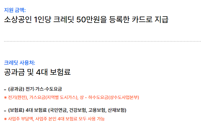 즉, 앞으로는 공과금 외에도 소상공인이 실제로 지출하고 있는 통신요금이나 차량 주유비까지 크레딧으로 결제 가능하게 되면서, 보다 폭넓은 계층이 실질적인 지원을 받을 수 있게 되는 셈입니다.
