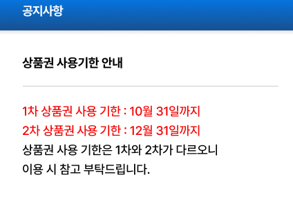 사용 기간 : 9월부터 사용 가능, 1차 상품권은 10월 31일까지