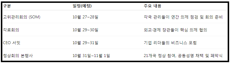 2025년 경주 APEC 정상회의 일정 및 주요 행사